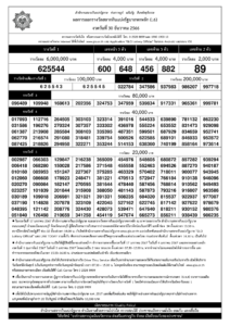 หมายเหตุ : โปรดตรวจสอบความถูกต้องกับสำนักงานสลากกินแบ่งรัฐบาลอีกครั้ง