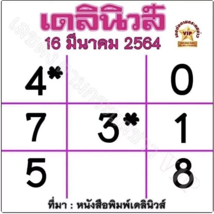 หวยเดลินิวส์งวดวันที่ 16/3/64 งวดนี้ ล่าสุด