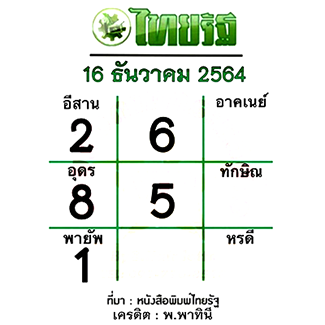 หวยไทยรัฐ 16/12/64 งวดนี้ ล่าสุด
